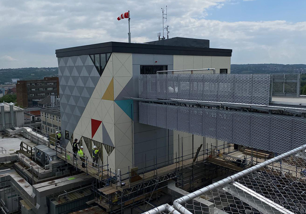 We supported Pacy & Wheatley in delivering the new rooftop helipad — a vital facility enabling faster emergency access for children. Our role included installing Rockpanel cladding with upgraded insulation, waterproofing, fire protection, and all associated support works, creating a safe, compliant, and modern façade.